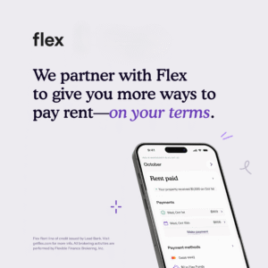 - Less stress – Flex helps you pay your rent on time, so you don’t have to worry.